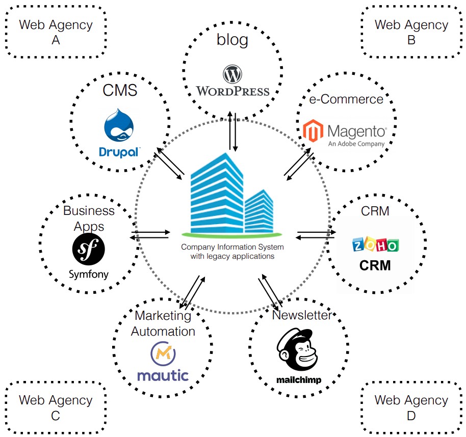 You end up with different platforms, logins, technologies, not necessarily connected between themselves.