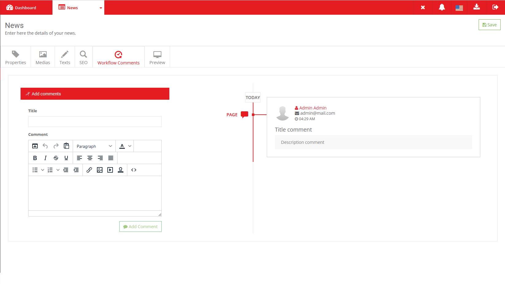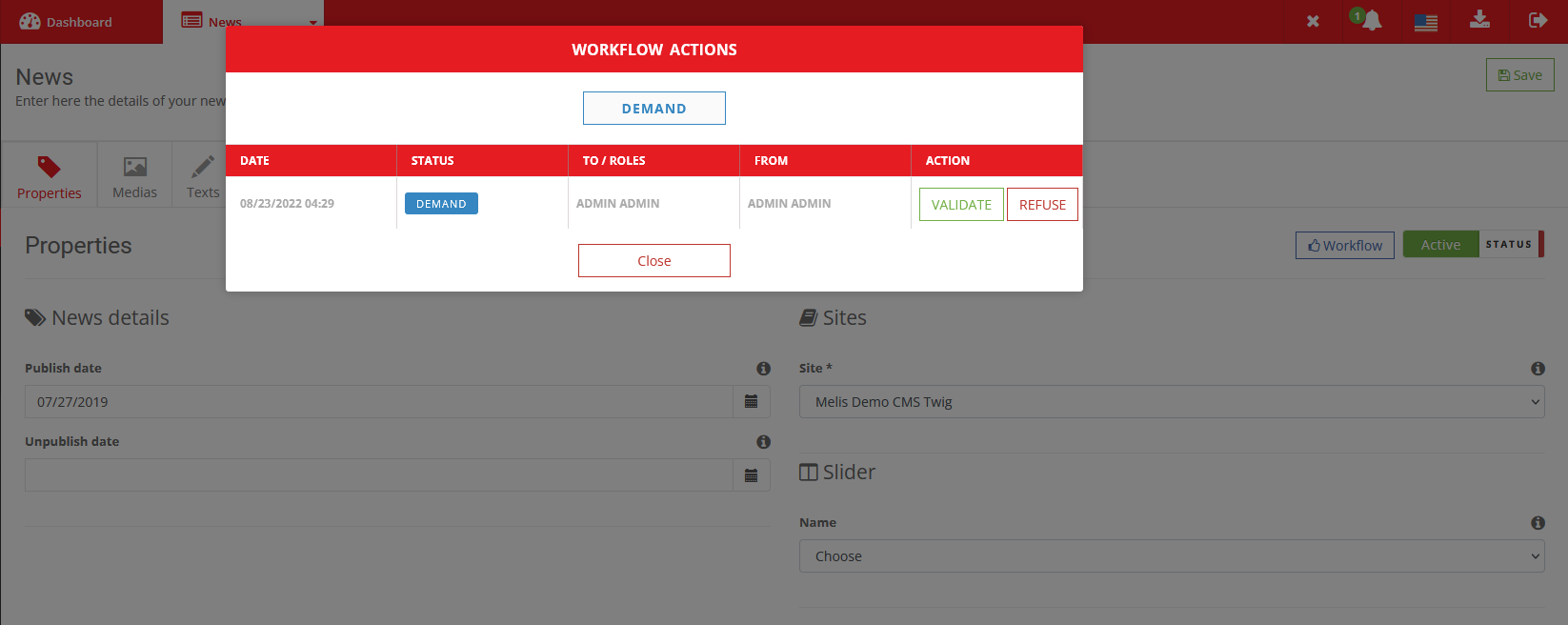 Collaboration within a company is of utmost importance for an optimum content management. While the worflow exists on page edition it made sense to include it to the news tool, enhancing the collaboration outcome of the different contributors working on the news.